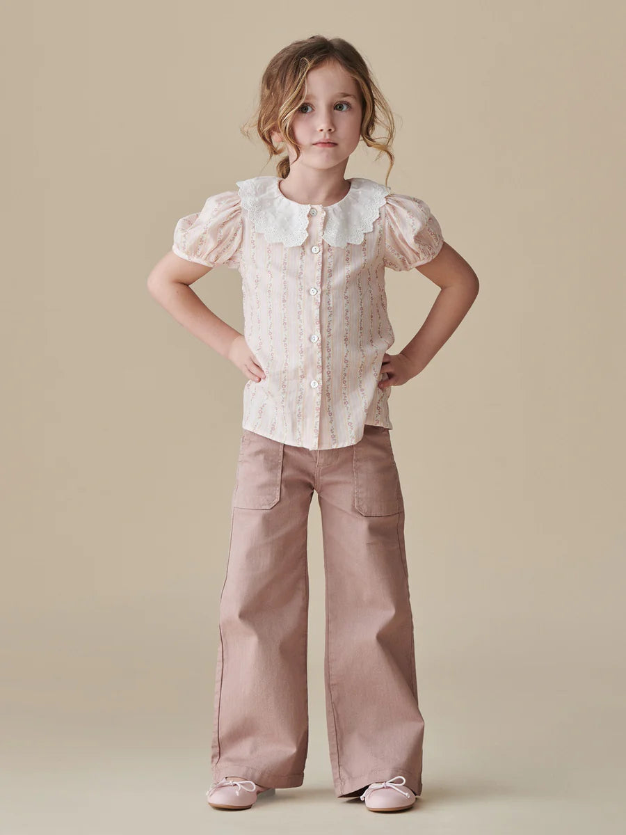 A versatile wardrobe essential that transcends the seasons, La Coqueta’s Enola Girl Wide Leg Jeans are a go-to for effortless style. Designed with a flattering wide-leg silhouette, these classic denim jeans feature patch pockets, belt loops, and a practical zip-fly with button fastening. Made from soft cotton denim with a hint of stretch, they promise all-day comfort and ease of movement. Perfectly suited for weekend outings, these timeless jeans bring a playful, relaxed charm to any outfit, ensuring they’ll be a favourite for year-round wear. This version is rendered in a dreamy shade of dusty pink, guaranteed to be on high rotation in your little girl’s wardrobe.